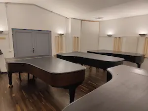 Nach der Begrüßung und einem leckeren Kaffee führte uns Oliver Greinus, der Geschäftsführer der Klangmanufaktur, zunächst in einen Raum mit vier Flügeln verschiedener Baujahre. Dort spielte Juan alle Instrumente an und wir diskutierten den Klang der Flügel im Vergleich sowie die Klang- und Restaurationsphilosophie der Manufaktur.