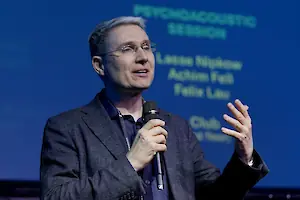 Anschließend erläuterten Piotr Majdak und Katharina Pollack das räumliche Hören und beschrieben die grundlegenden Zusammenhänge zwischen Physik und Wahrnehmung bei der Wiedergabe über einen und mehrere Lautsprecher. Karlheinz Brandenburg ging auf die technologischen Entwicklungen bei der immersiven Wiedergabe über Kopfhörer ein. Eine der größten Herausforderungen bestehe darin, ein so realistisches immersives Klangerlebnis zu schaffen, dass es der Hörperson schwerfällt, es vom Klang einer echten Schallquelle zu unterscheiden. Um diese Illusion zu erreichen, sei es nicht notwendig, jeden einzelnen Parameter detailgetreu zu reproduzieren.