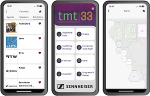 Stefani: The app also fulfills another important function: it replaces the program booklet – which used to be printed on lots of paper – with a complete list of exhibitors and all the abstracts of the individual contributions. Of course, both can also be viewed on site via the website, but the app uses much less data (especially important for our international guests), is faster, and allows users to save their personal tmt33 favorites from the exhibition and program. This makes it easier to keep track of this rather extensive Tonmeistertagung.